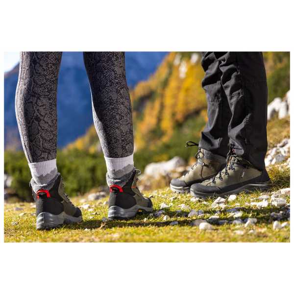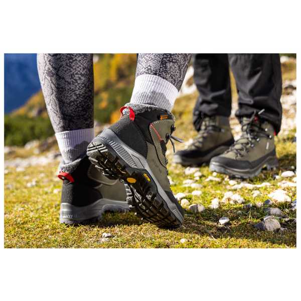 - Подметка Vibram® за Превъзходно Сцепление: Подметката Vibram е разработена за **максимална функционалност и стабилност**. Дизайнът на грайферите гарантира отлично сцепление, лесно спиране по стръмни склонове и самопочистване от кал.
