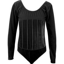 Идеално за ежедневни тренировки по художествена гимнастика, класически балет, акробатика и фигурно пързаляне. Черното кадифено трико е отлична основа и за сценични костюми.
