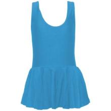 Осигурете на вашето дете комфорт и самочувствие с нашето детско трико с поличка в наситен син цвят. Този модел е класика в жанра, съчетавайки удобството на кройката "тип потник" с грацията на ефирната поличка. Синьото излъчва спокойствие и професионализъм, което прави екипа идеален избор както за първите стъпки в балета, така и за интензивни тренировки по художествена гимнастика. Меката материя гали кожата и позволява на малката танцьорка да се фокусира изцяло върху своите движения.