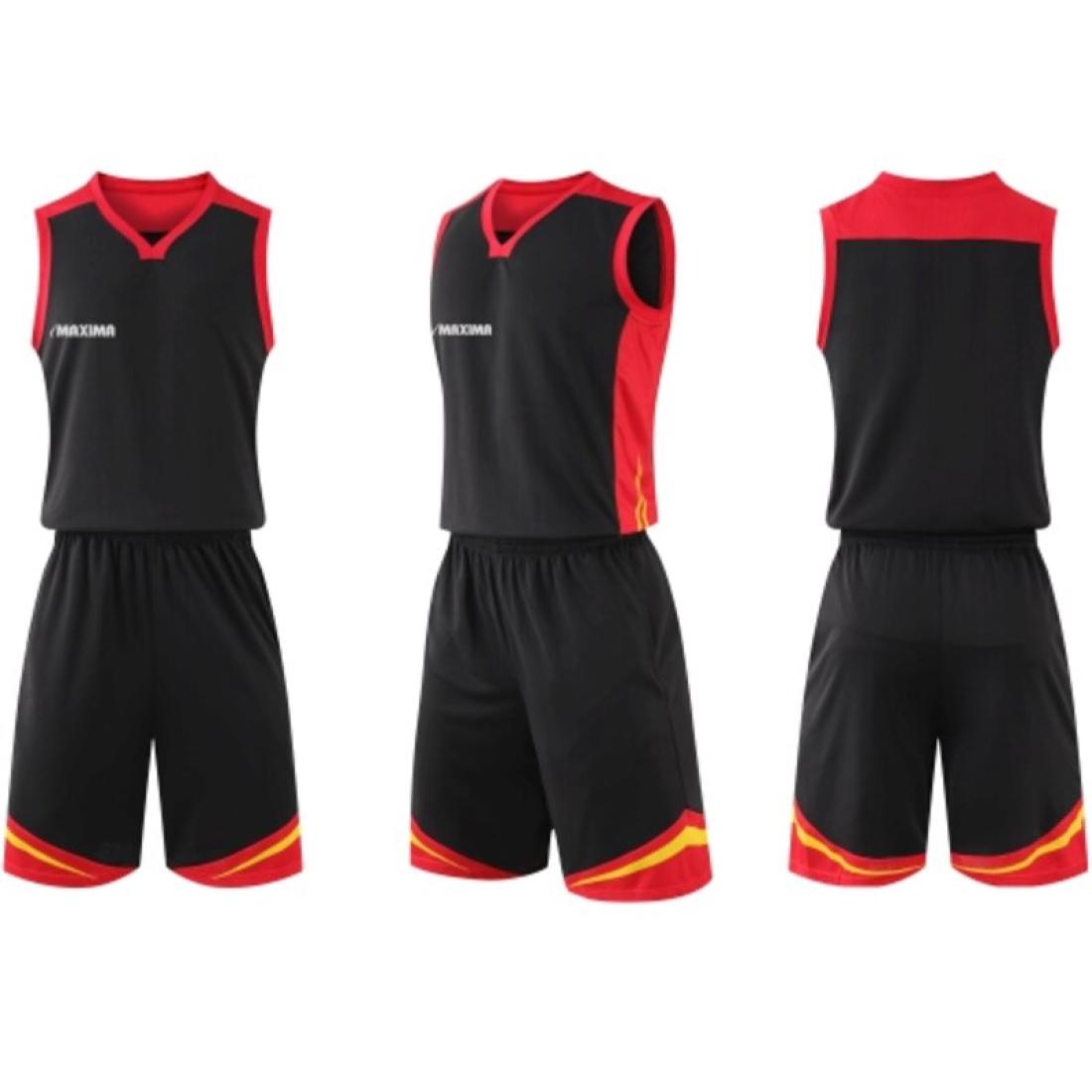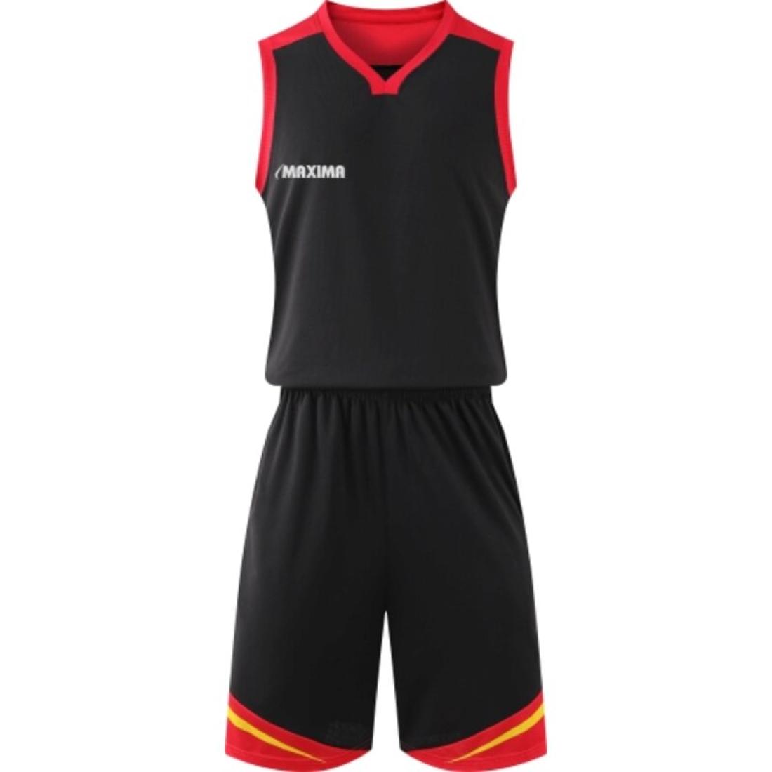 Екип за баскетбол MAXIMA Черен с червен и жълт, размер 32 XL, бързосъхнещ полиестер