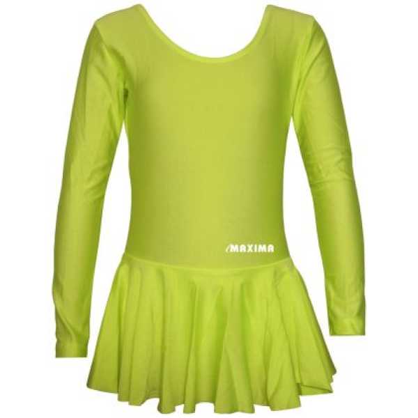 Ако вашето дете обича да бъде под прожекторите, детското трико с дълъг ръкав и пришита поличка MAXIMA в наситено електриково зелено е идеалният избор. Този модел "2 в 1" съчетава удобството на класическото трико с кокетна поличка, но в дързък, неонов нюанс, който привлича погледите мигновено. Това е перфектният костюм за модерни танци, джаз балет, тематични партита и гимнастически съчетания, където динамиката и визуалното въздействие са от ключово значение.