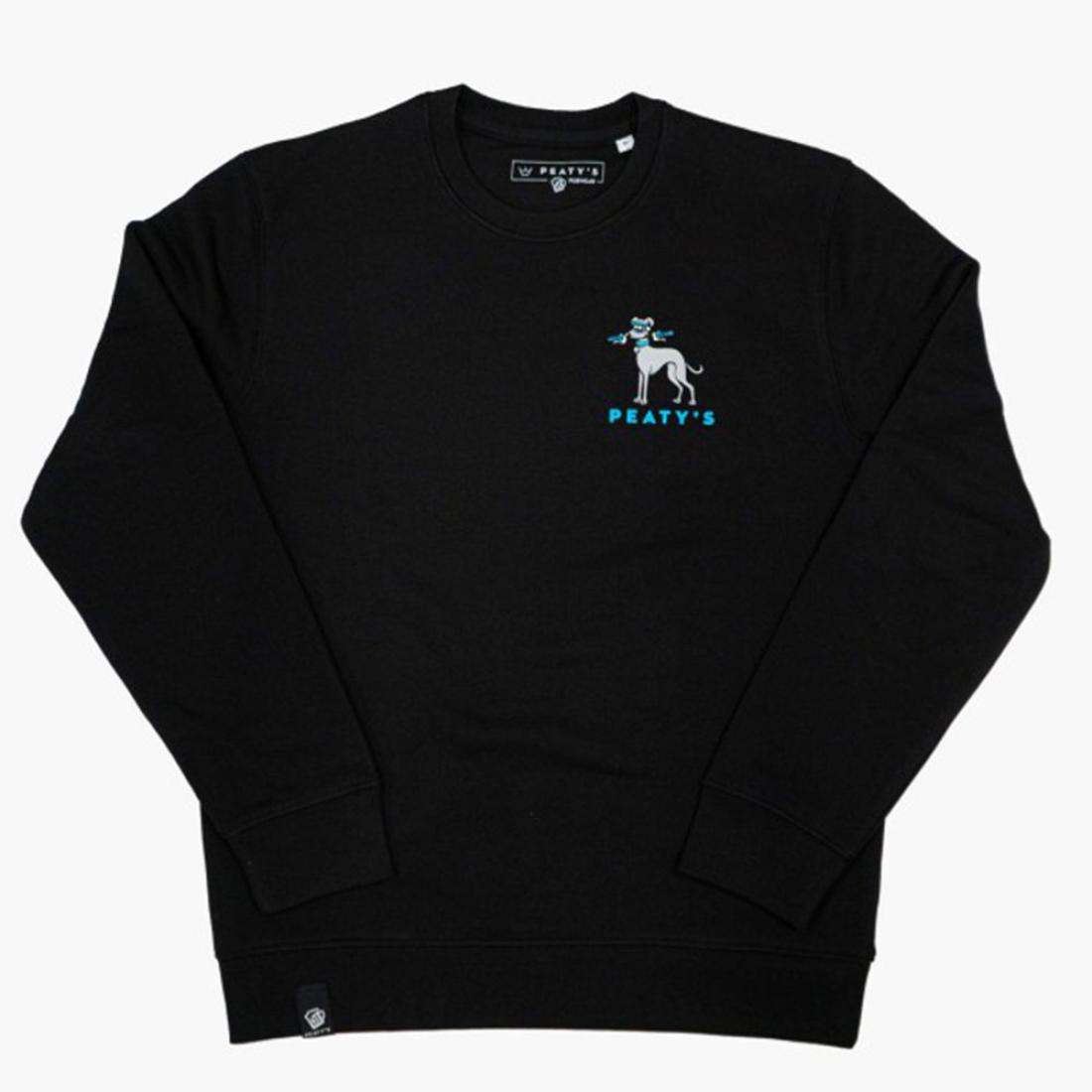 - Дискретни Peaty's детайли: Висококачествен принт "Whippet" на гърдите, скрит надпис "Pubwear" от вътрешната страна на яката и фин текстилен етикет Peaty's на подгъва за автентичност.