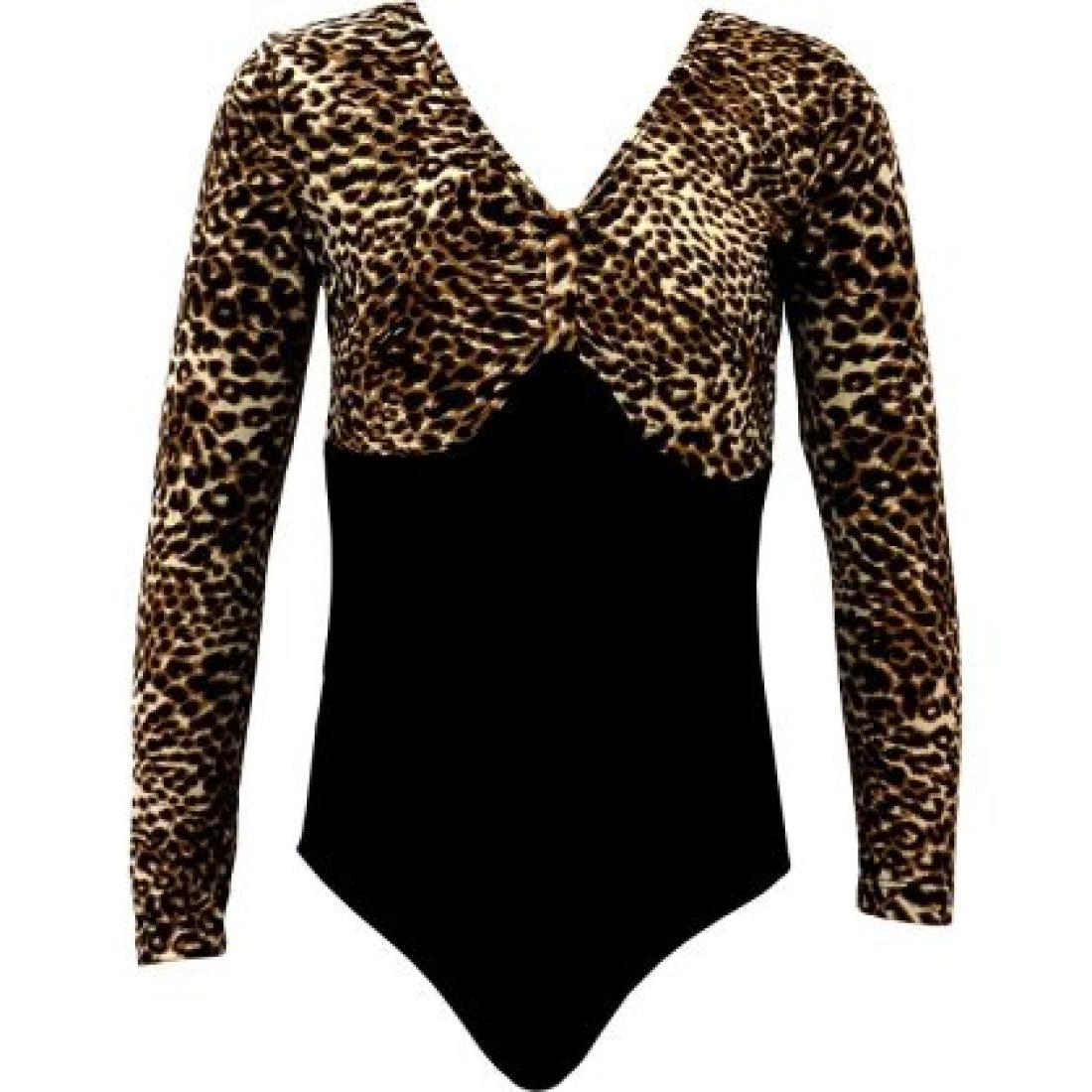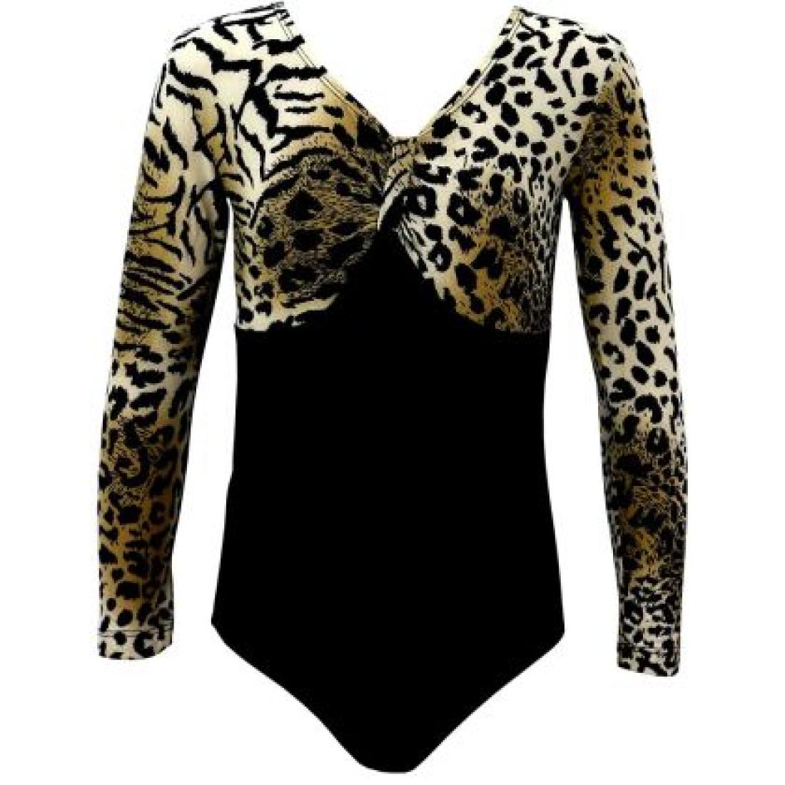 Отключете дивата енергия на малката си шампионка с нашето ексклузивно детско трико с дълъг ръкав и леопардова щампа. Този модел е създаден за момичета, които обичат да се открояват и да танцуват със страст. Комбинацията от класическо черно трико и ефектна горна част с леопардов принт придава дързък и модерен вид, който едновременно вдъхновява увереност и осигурява максимален комфорт по време на тренировки и изпълнения.