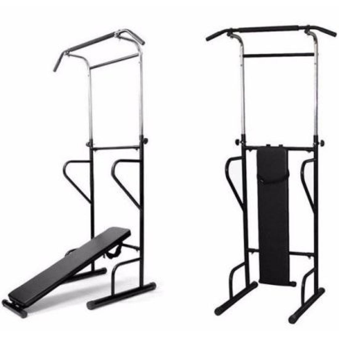 Изберете гъвкавостта и разнообразието в упражненията с многофункционалния уред за тренировка, комбиниращ лежанка и стойка с лост.
