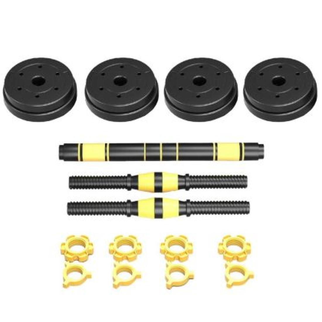 - Комплект: 4 диска x 2 кг, 4 диска х 1.5 кг, 8 гайки, 2 х лоста за дъмбел с дължина 40.5 см, 1 свързващ лост с дължина 39 см