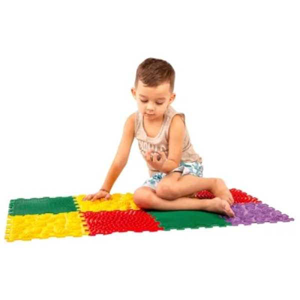 Модулният килим ORTHO PUZZLE е идеален за деца над 1 година, предлагаща уникално игрово изживяване, което подобрява моторните умения и баланса. Килимът симулира ходене по неравен терен, което стимулира развитието на стъпалата и мускулите на подбедрицата.