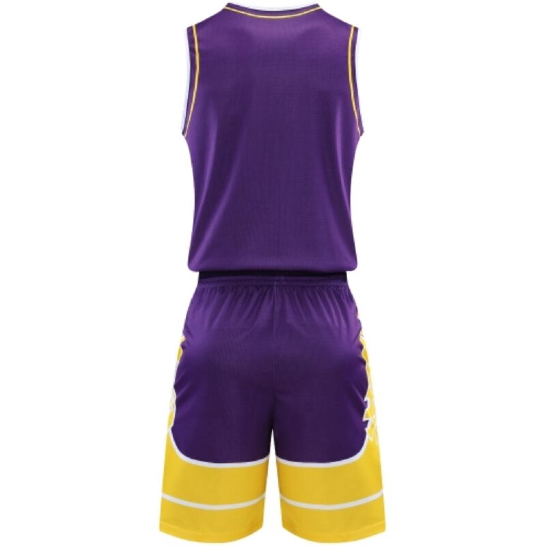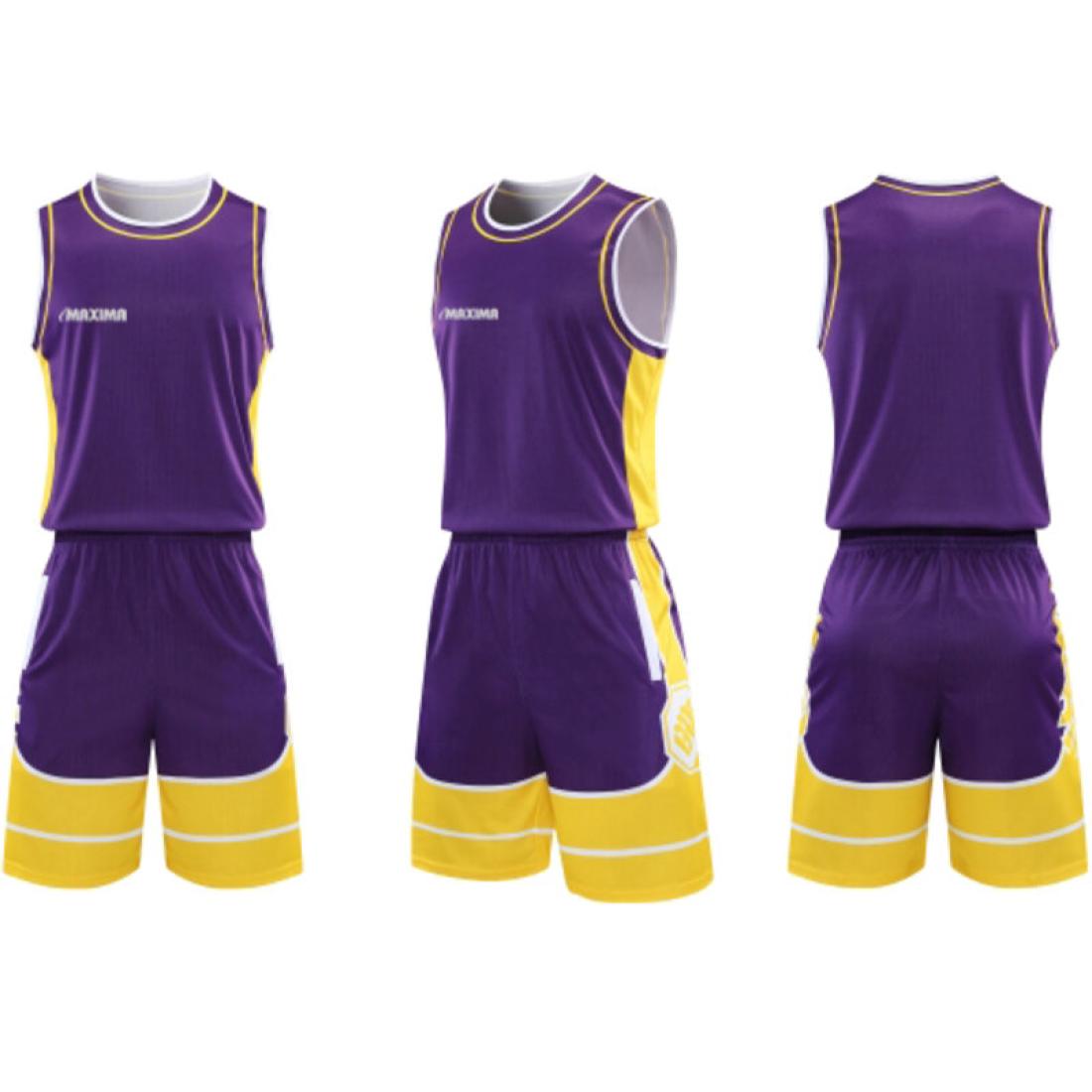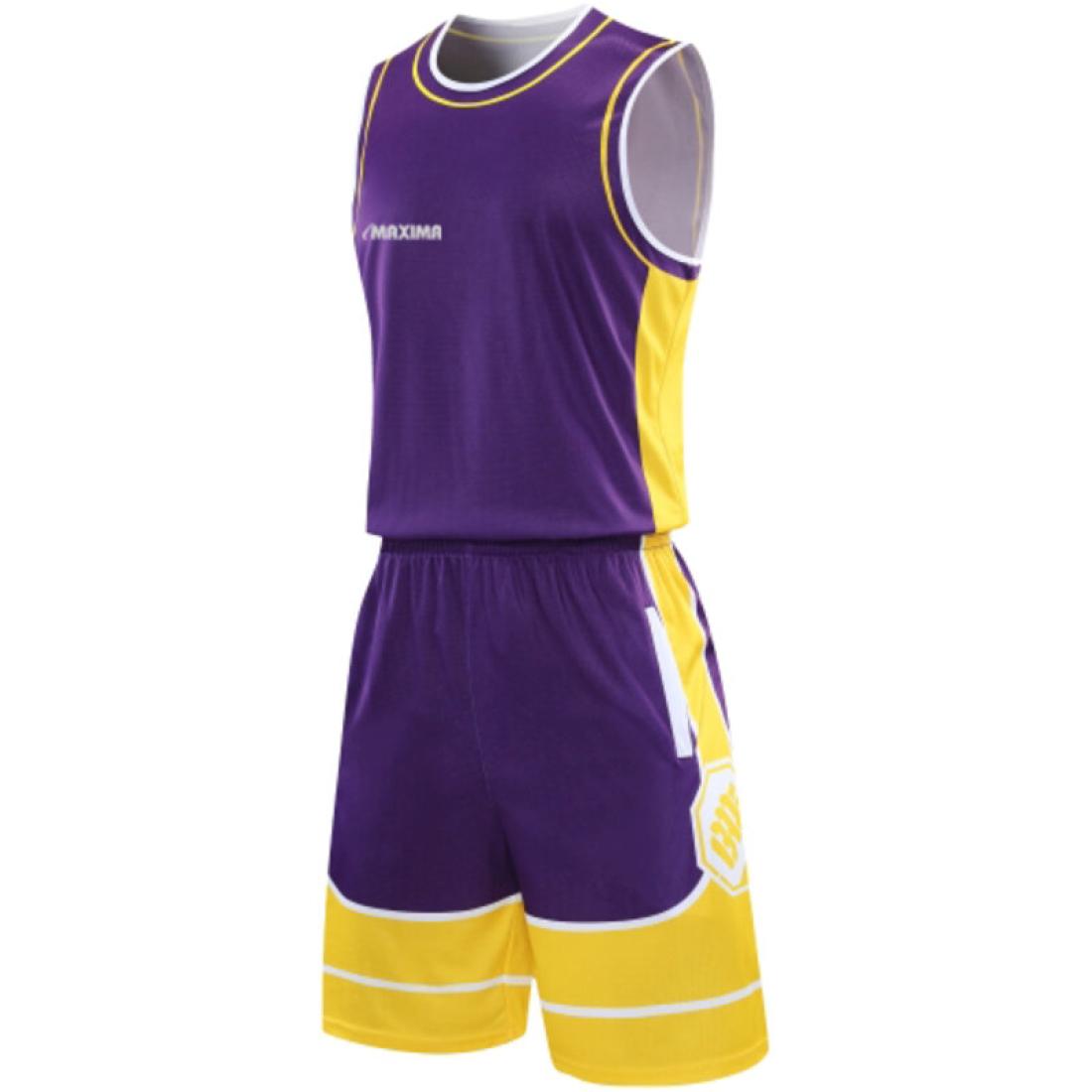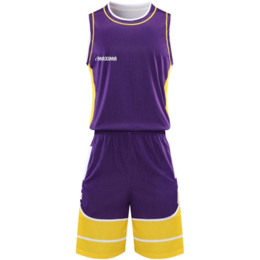 Екип за баскетбол MAXIMA Лилав с жълт и бял, Бързосъхнещ полиестер, Размери 30, 32, XL