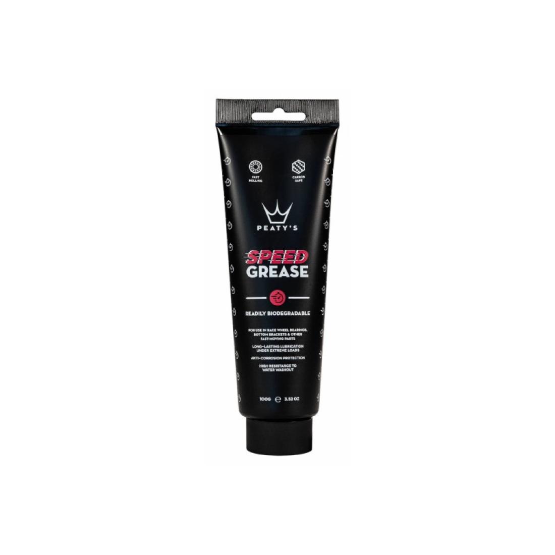 Peaty's Speed Grease е специално разработена за употреба в лагери на състезателни колела, средни движения и други бързо движещи се части на велосипеда. Осигурява дълготрайно смазване под екстремни натоварвания, както и изключителна устойчивост на измиване с вода. Формулата е безопасна за карбон и идва в 100% рециклирана опаковка.