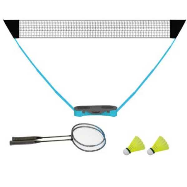 Забавление навсякъде и по всяко време – Комплектът включва всичко необходимо за бързо организиране на игра: лесно сглобяема мрежа, телескопични стълбове, ракети и перца. Перфектен за паркове, плажове или градински партита.