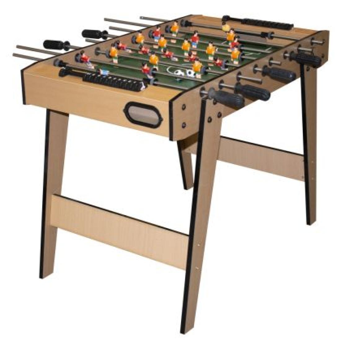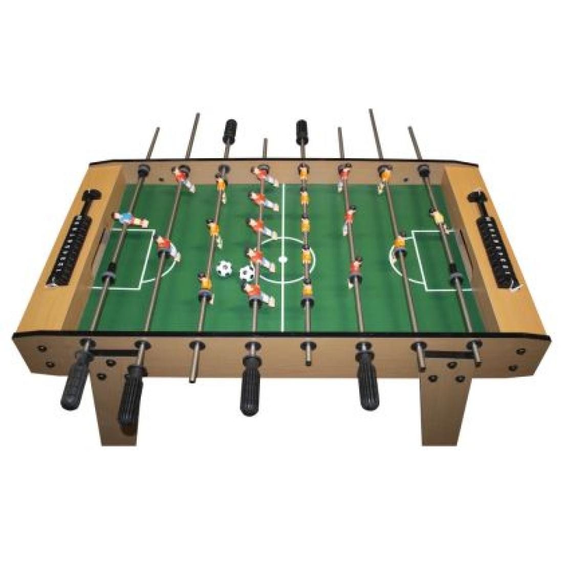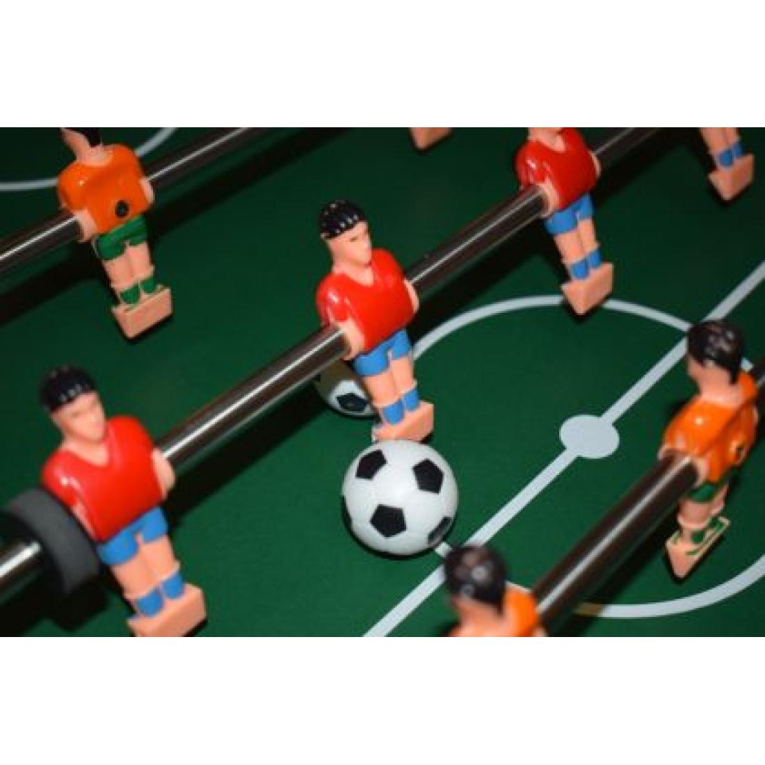 - Окомплектовка: Включва 22 играча, 2 топчета (3 см диаметър) и ръчни плъзгачи за отброяване на резултата.